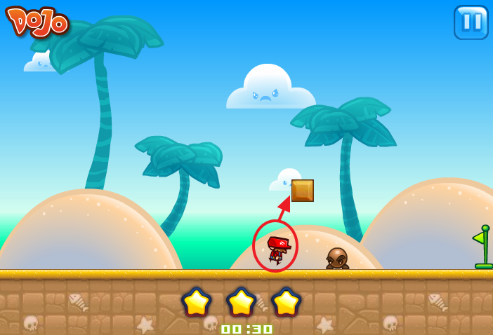 다음레벨은 배관공이 점프를 하여 저 위 블럭에 맞고 아래로 떨어지게 타이밍을 맞춰야 합니다.