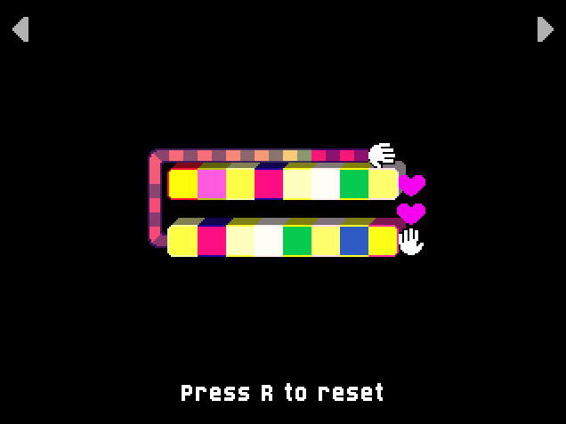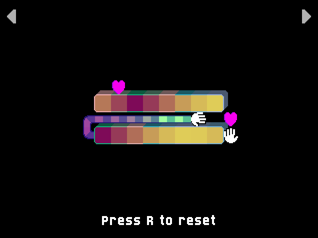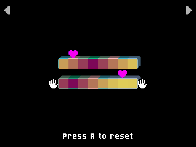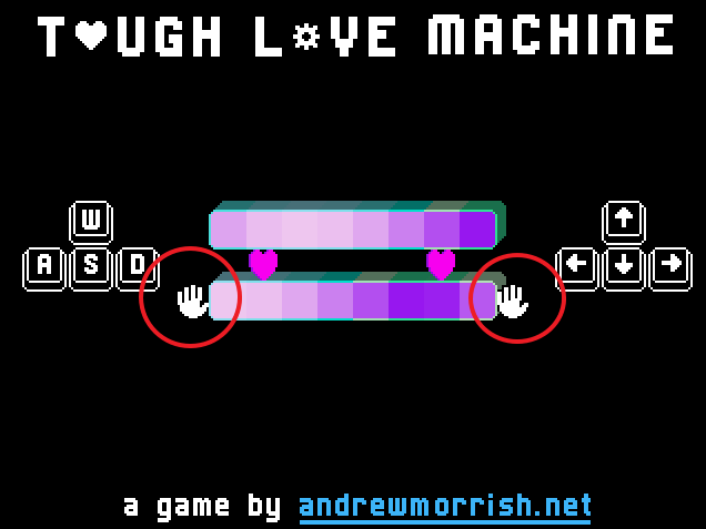 WASD와 방향키로 각기 두 손바닥을 이동시켜 하트를 밀어냅니다.