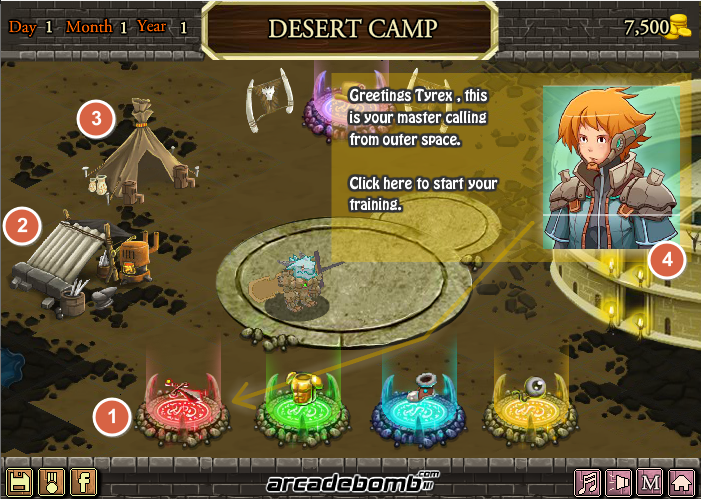 메인화면에서는 능력치를 올려주는 연습장과 업그레이드센터나 상점및 배틀을 할수 있는 장소를 선택할수 있습니다.
