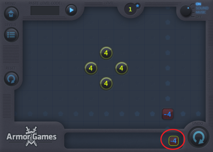 썸포인트(Sum Points: Levels Pack)의 1레벨 게임화면입니다.
