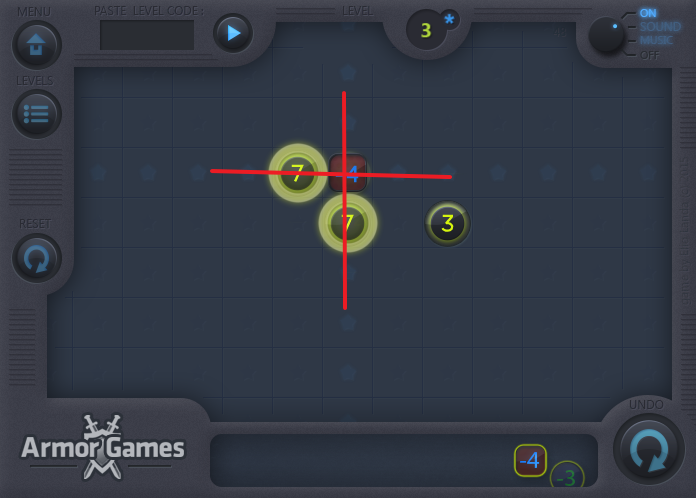 2레벨에서는 메인화면에 7두개와 3이 나오며 아래에는 -4와 -3이 나왔습니다.