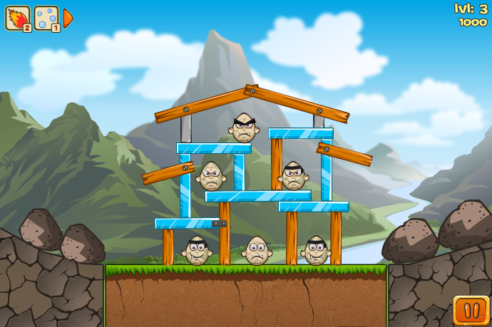 강력한 한방으로 건물을 무느뜨려 달걀을 깹니다.