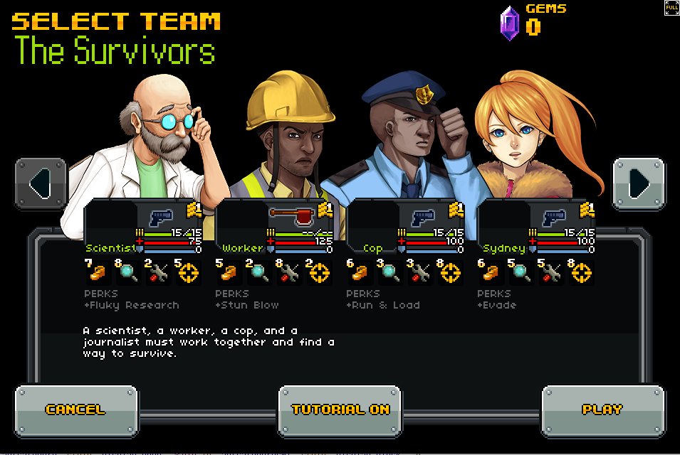 인펙토네이터 서바이버( Infectonator : Survivors)는 팀을 선택하여 팀원의 배치를 해주면 좀비에 대한 공격과 방어는 알아서 하는 슈팅게임입니다.