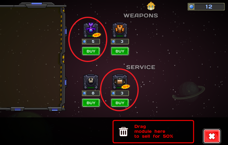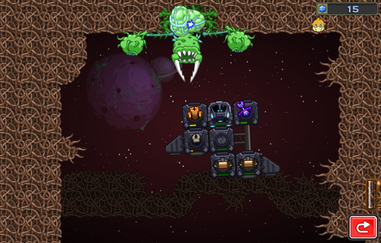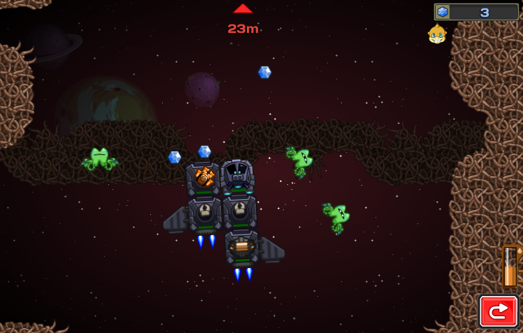 이런식으로 하나씩 부품을 장착하며 적읗 해치우고 광물을 계속모으는 업그레이드 게임입니다.