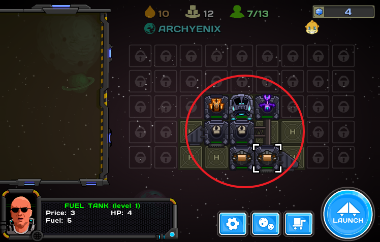 연료가 떨어지면 업그레이드창으로 가서 부품의 구입및 장착을 합니다.