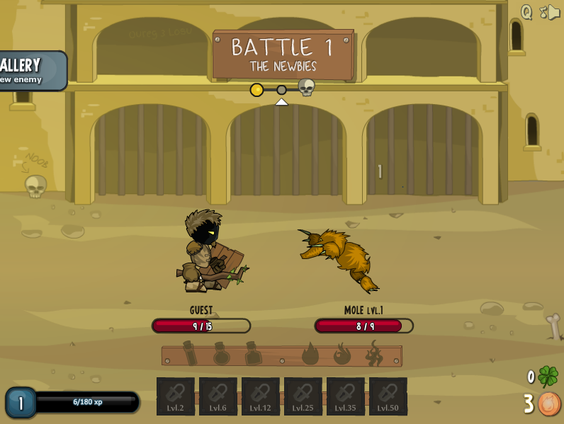 아레나에서 적과 붙어 머니를 획득합니다.
