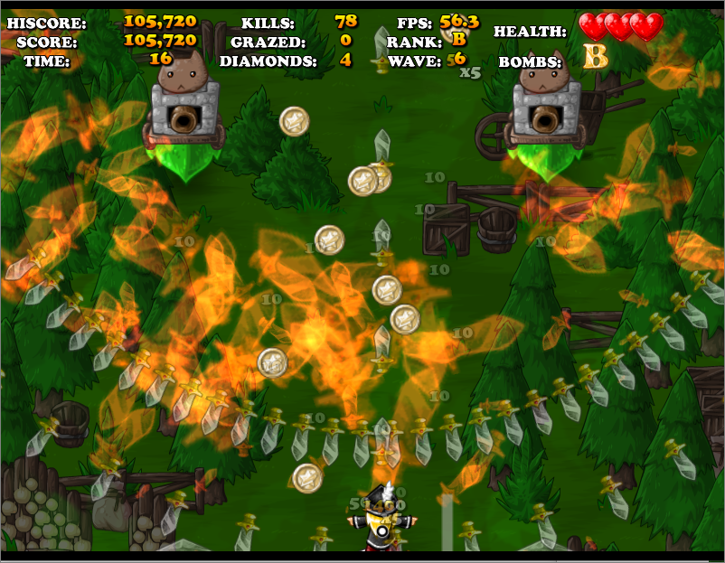 적이 막 몰려나오면 스페이스바를 눌러 폭탄을 터뜨립니다.