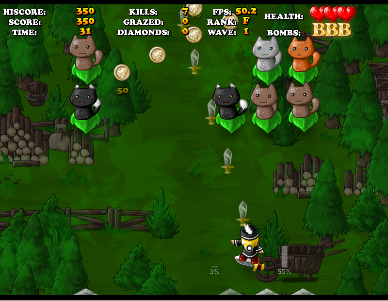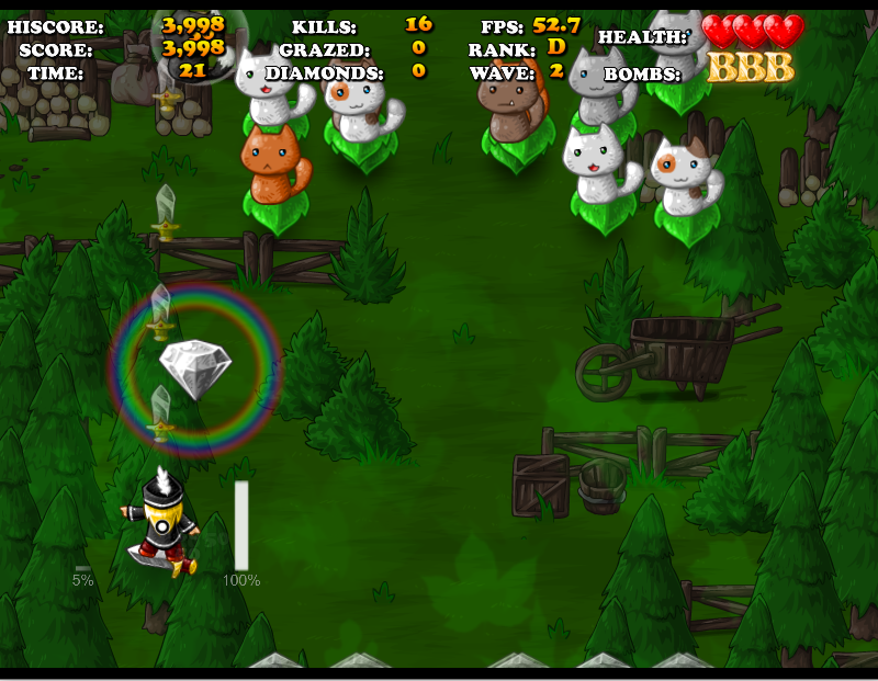 적을 해치우고 보석을 획득하여 점수를 높입니다.