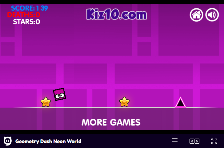 지오메트리 네온 대쉬(Geometry Neon Dash)는 마우스클릭으로 장애물을 피하며 별을 획득하는 런게임입니다.
