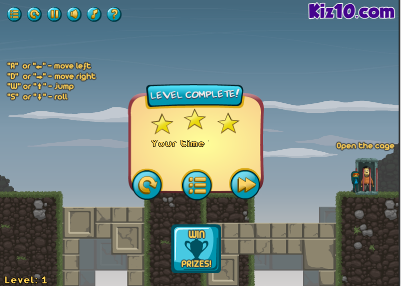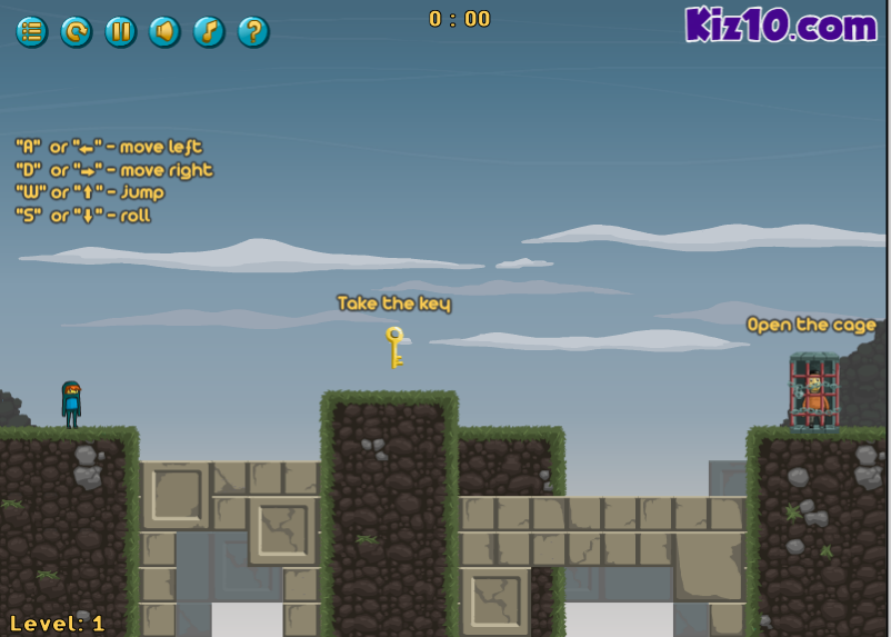 방향키를 이용하여 열쇠를 획득한다음 쇠창살에 갖혀있는 동료를 구출하는 게임입니다.