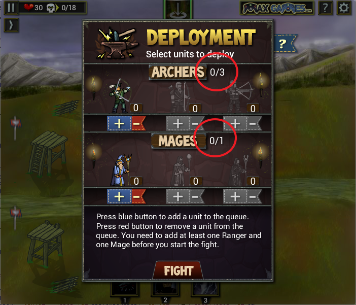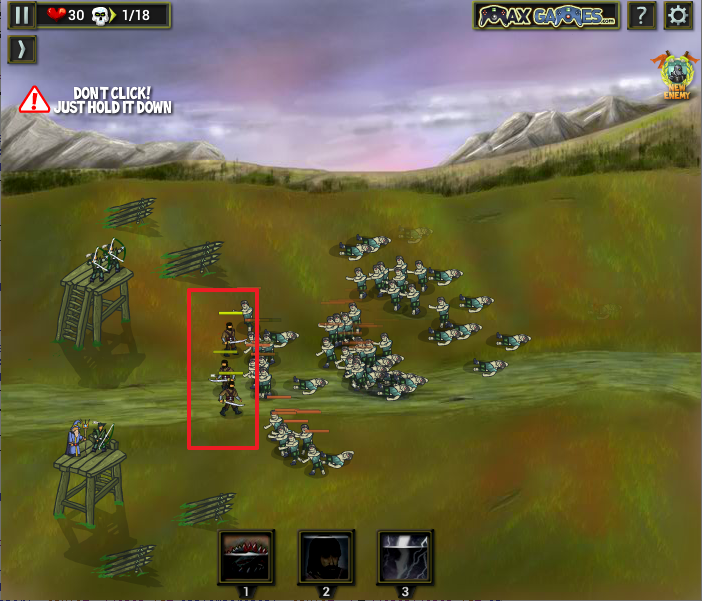 궁수와 마법사를 숫자가 되는 만큼 선택을 하고나면 알아서 적을 방어합니다.