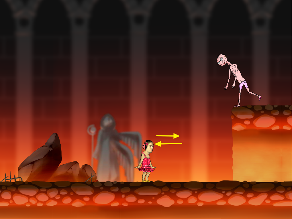 위에서 뭔가 떨어지는데 재빠르게 앞으로 갔다가 뒤로 빠져줘야 피할수 있습니다.