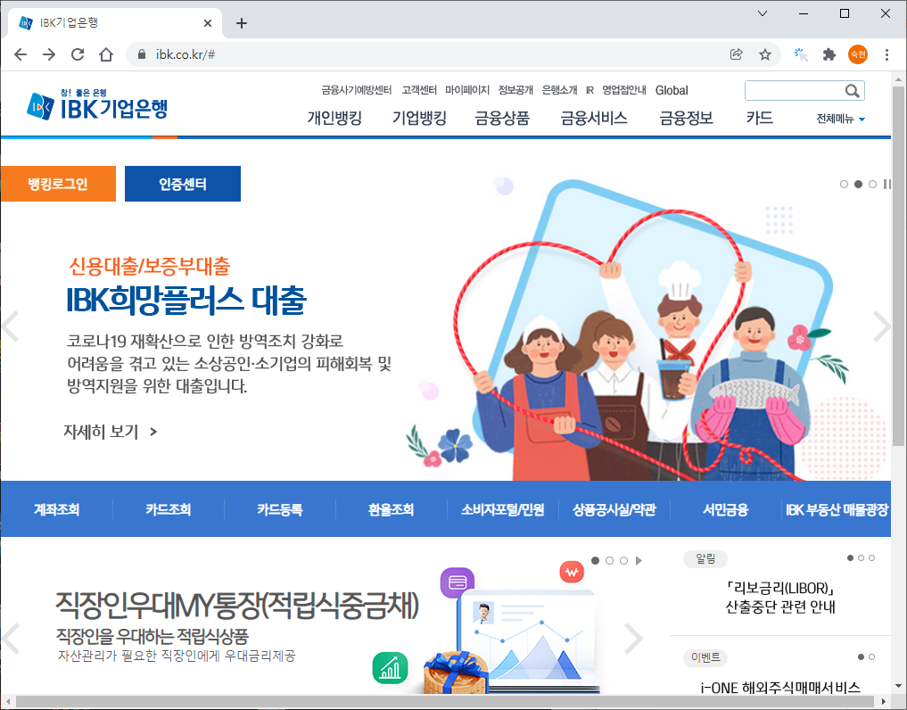 먼저 기업은행 홈페이지에 접속을 합니다.