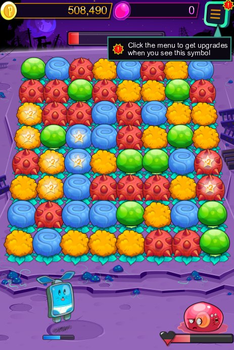 이 블럭을 없애면 아래의 캐릭터가 레벨이 올라가 우측 적 보스를 해치우는데 도움이 됩니다.