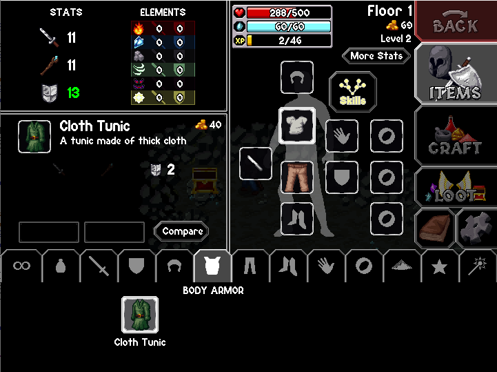 더 언챈티드 케이브 2 (The Enchanted Cave 2)는 이런식으로 캐릭터를 키워나가며 던전을 모험하는 게임입니다.
