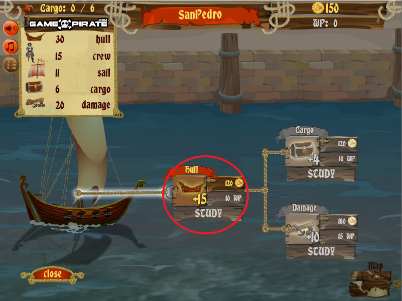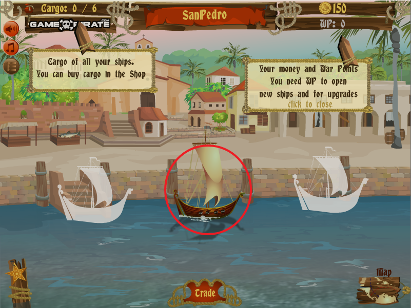 배를 몰아 적을 해치우고 경험치와 머니를 획득하며 무역을 통해서도 머니를 획득합니다.