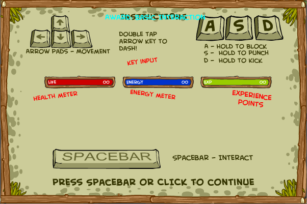 게임의 이동키는 방향키이며 공격 및 방어는 A, S, D로 합니다.