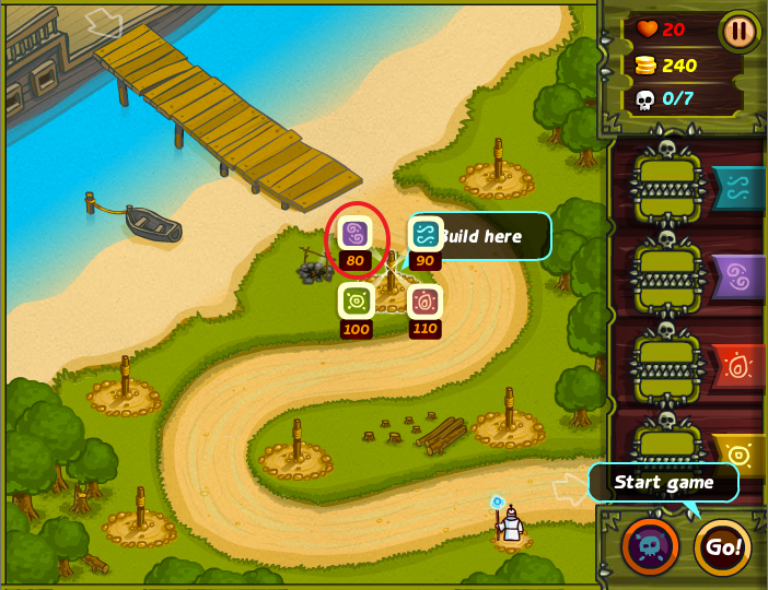 80골드짜리가 데미지는 가장 낮지만 공격속도가 가장 빨라 유용한 타워입니다.