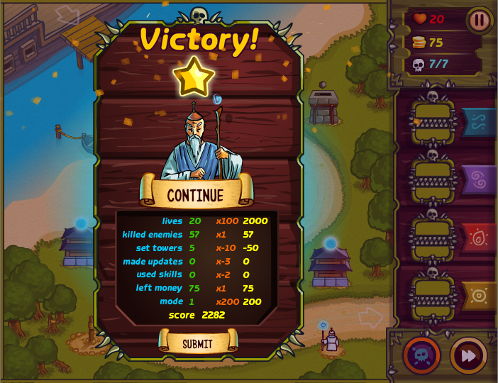 적을 해치우면 머니가 획득되며 추가 타워를 건설합니다.