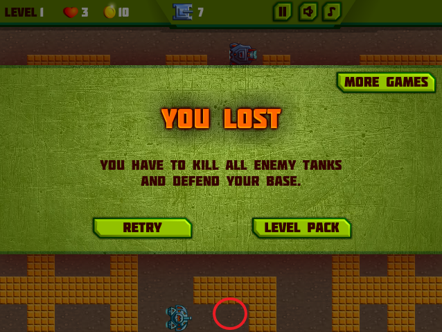 적 탱크를 모두 부수면 클리어됩니다.
