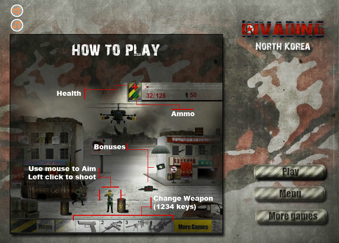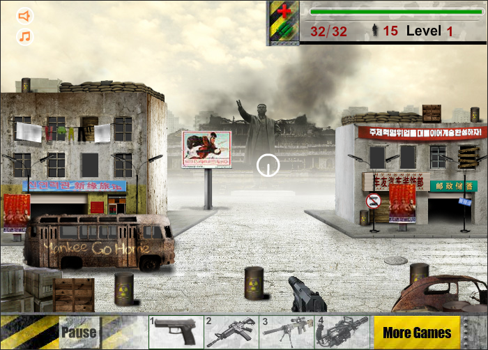 인베이딩 노스코리아(Invading North Korea)의 게임화면을 살펴보죠.