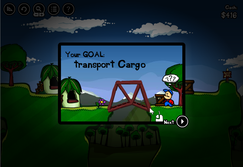 카고 브릿지(Cargo Bridge)는 마우스를 이용해 두 공간사이에 다리를 만드는 게임입니다.