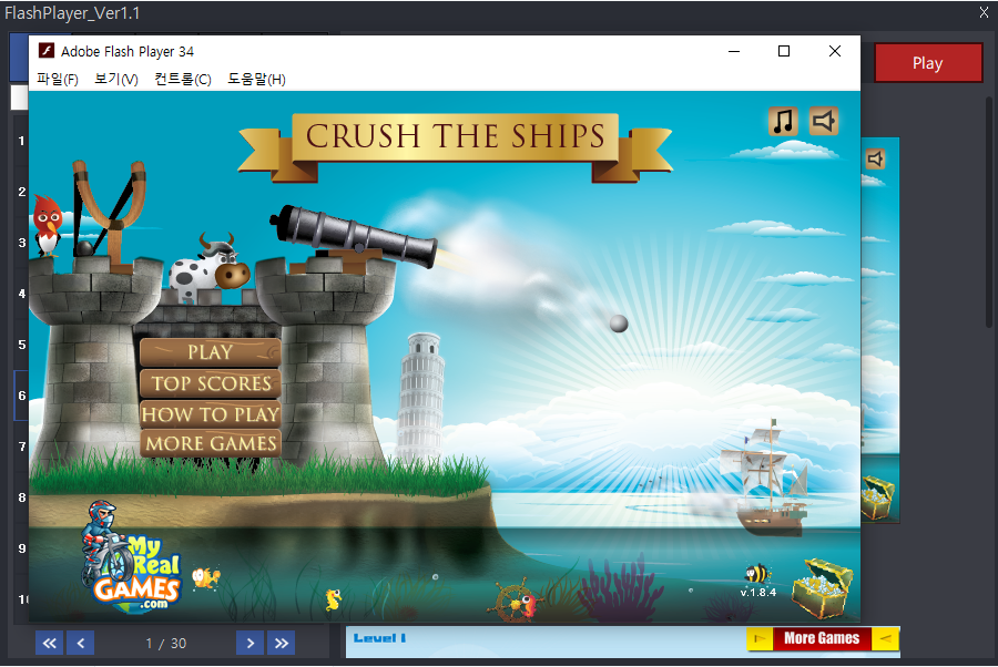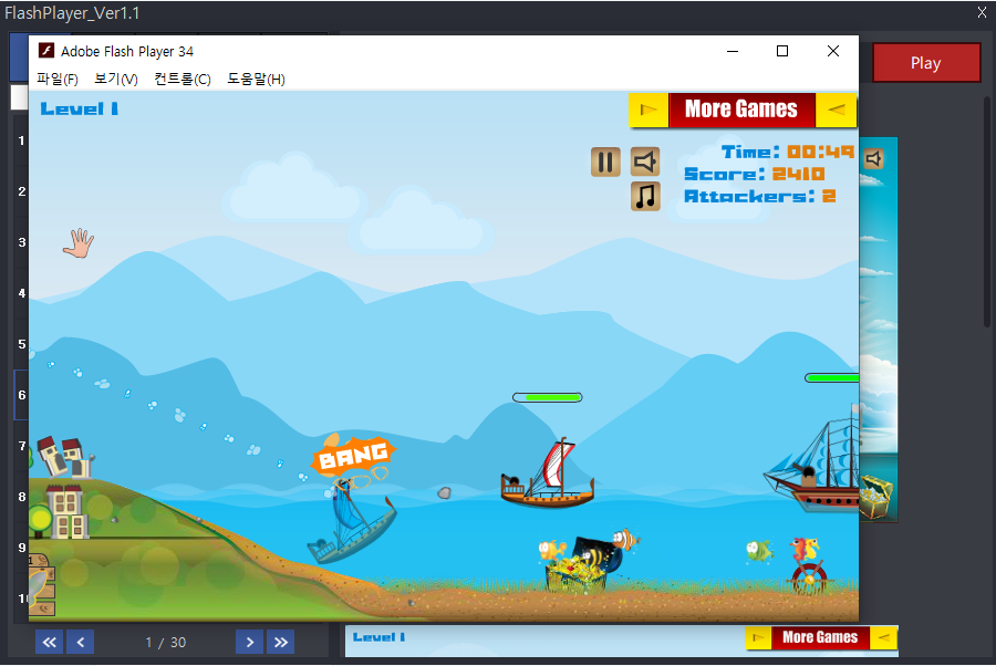 크러쉬 더 쉽(Crush The Ships)을 플래시플레이어에서 플레이해보죠.