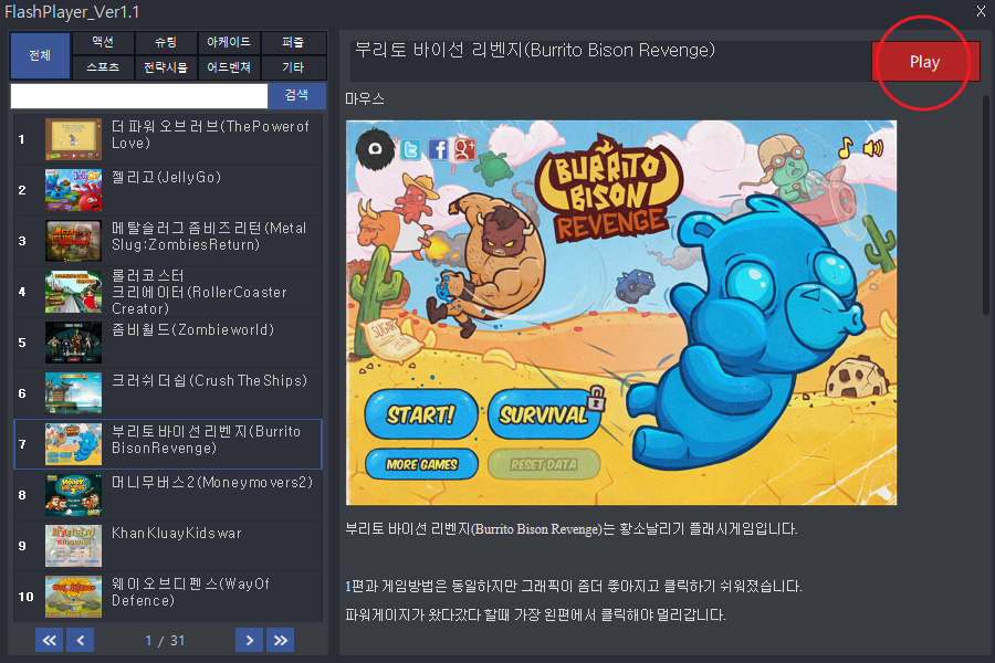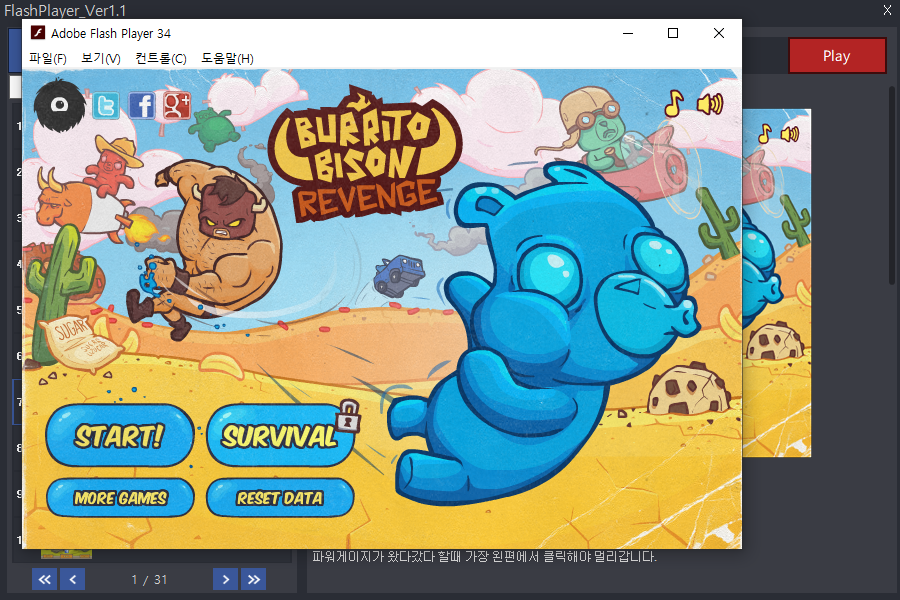 부리토 바이선 리벤지(Burrito Bison Revenge)를 플래시플레이어에서 실행해보죠.