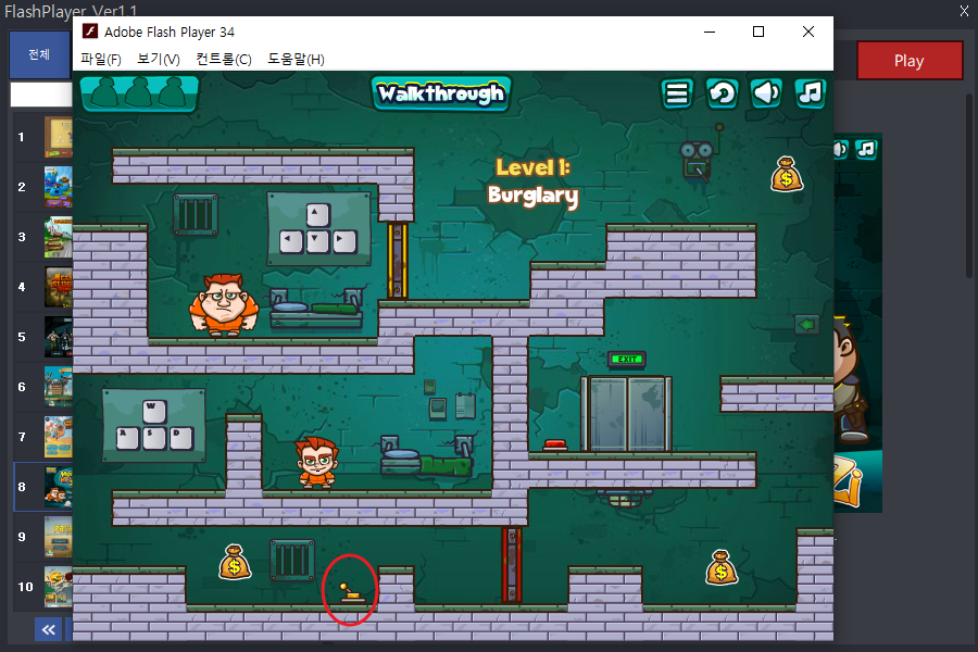 머니무버스2 (Money movers2)는 두개의 캐릭터가 상호 협조하에 탈출을 해야 하는 게임입니다.