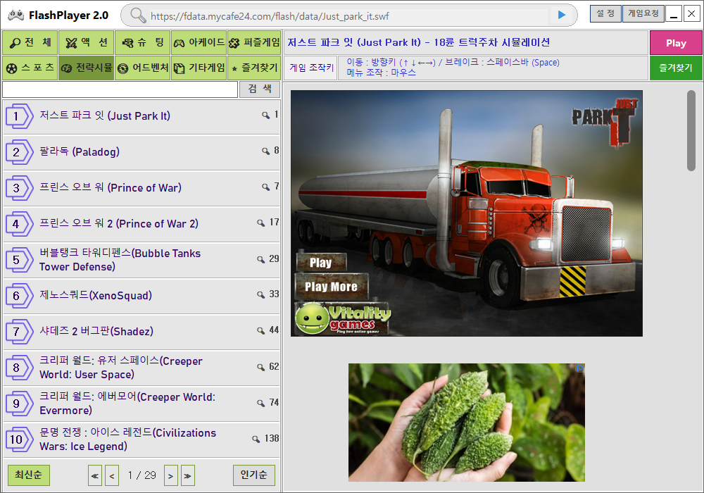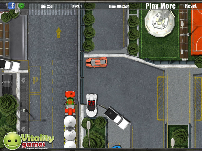 저스트 파크 잇은 거대한 18륜 트레일러 트럭을 조작해 지정된 위치에 주차하는 트럭주차 시뮬레이션 플래시게임입니다.