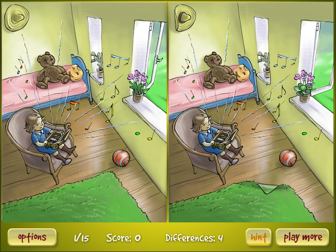 - 스코어 획득: 틀린 곳을 찾을 때마다 점수가 올라가며, 하단의 'Differences' 카운터가 표시됩니다.