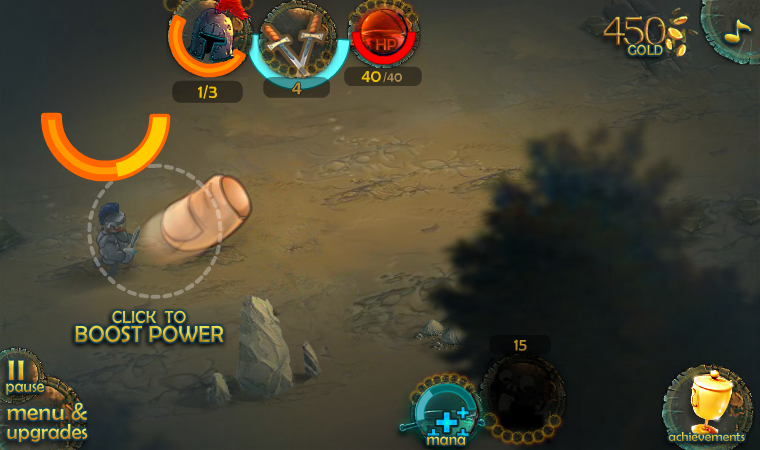 좌측 하단 menu & upgrades에서 공격력과 체력을 우선 업그레이드하세요.