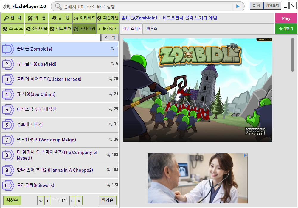 - 다양한 장르의 고전 플래시게임 제공