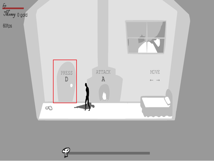 공격은 A키이며 D는 문을 열때 사용합니다.