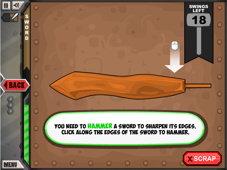 잭스미스 대장장이 게임의 화면을 보면서 게임을 좀더 알아보죠.