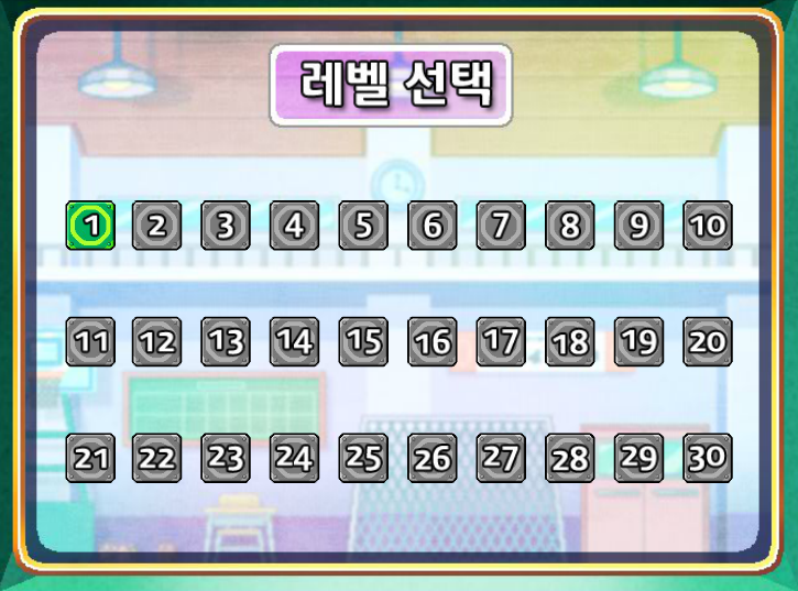 1,2레벨들은 게임방법 설명에 관련된 내용입니다.