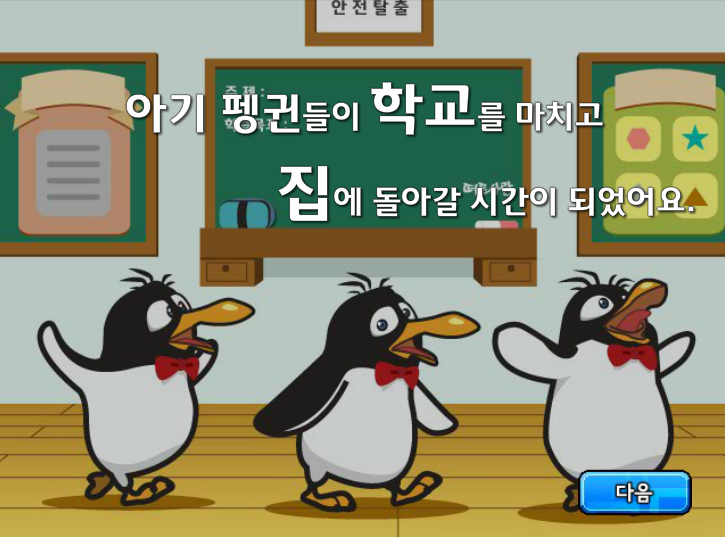 설정은 아기 펭귄들이 학교를 마치고 집으로 돌아갈 시간이 되었습니다.
