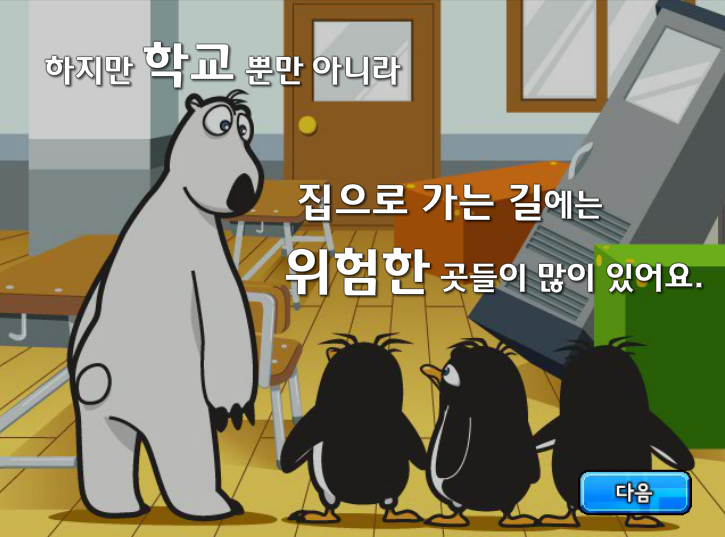 학교와 집으로 가는길에는 위험이 도사리고 있습니다.