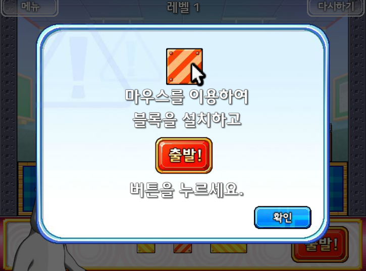 주어진 블럭으로 바닥을 채운다음 출발을 누릅니다.