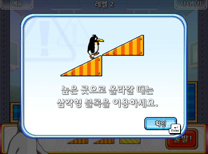 다음 레벨은 조금 복잡하게 삼각형 블럭을 사용해야 합니다.