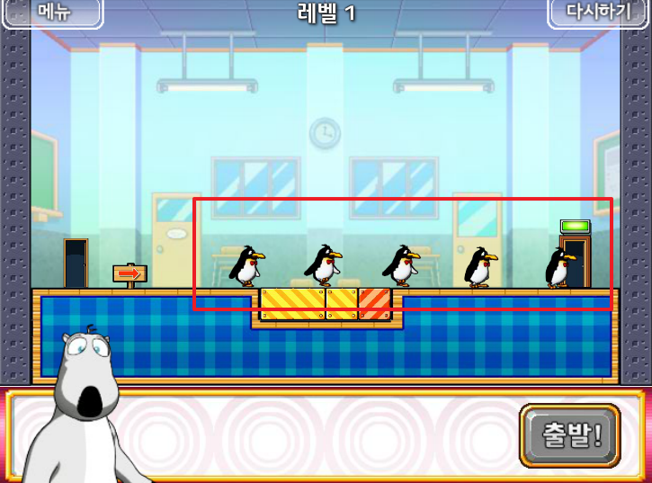 이것이 안전과 관련이 있어보이지는 않지만 아무튼 블럭을 쌓아서 펭귄들이 안전하게 지나갈수 있도록 하는 게임입니다.