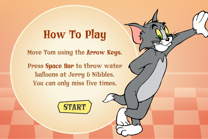 키보드 방향키로 이동을 하며 빨래줄 위를 지나가는 제리를 향해서 물풍선을 던져서 맞추면 됩니다.
