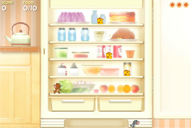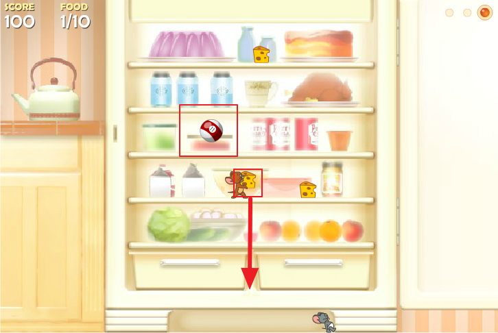 제리를 선택하면 냉장고에서 치르를 집어서 아래로 던져서 받게 하면 됩니다.