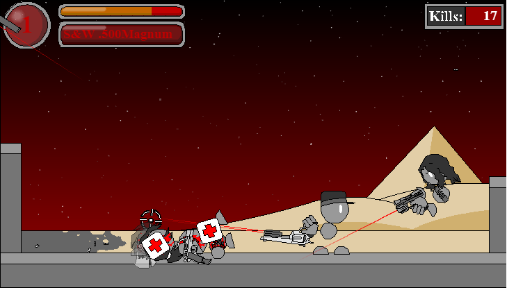 계속해서 적이 몰려오므로 열심히 총을 쏴야 합니다.