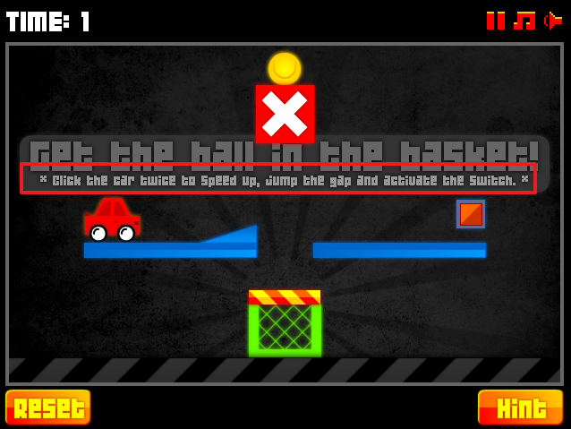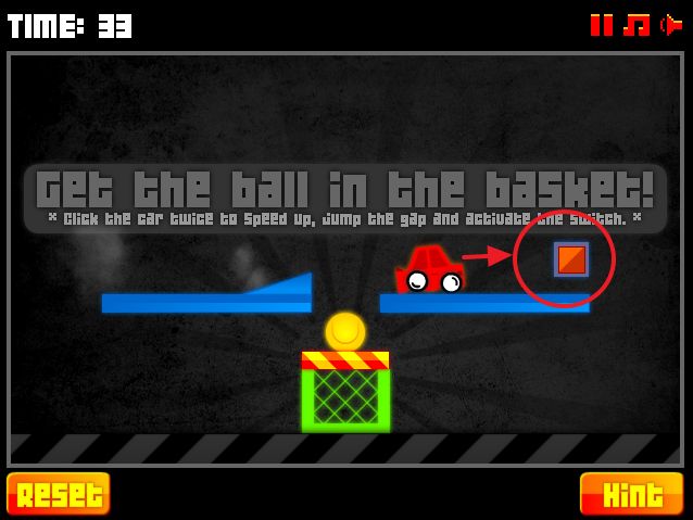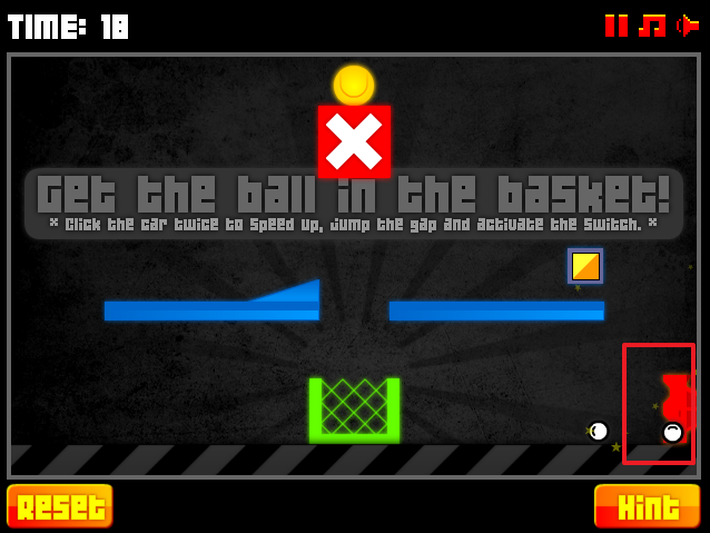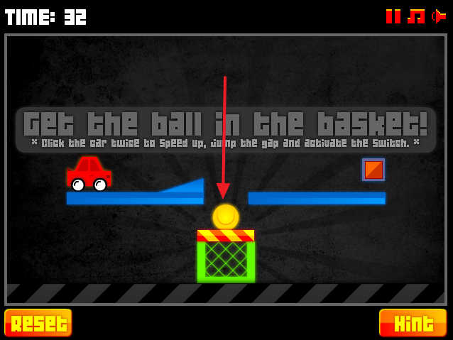 자동차를 클릭하면 앞으로 나갈수 있고 공이 있는 곳아래에 X표시를 클릭하면 공이 아래로 떨어집니다.