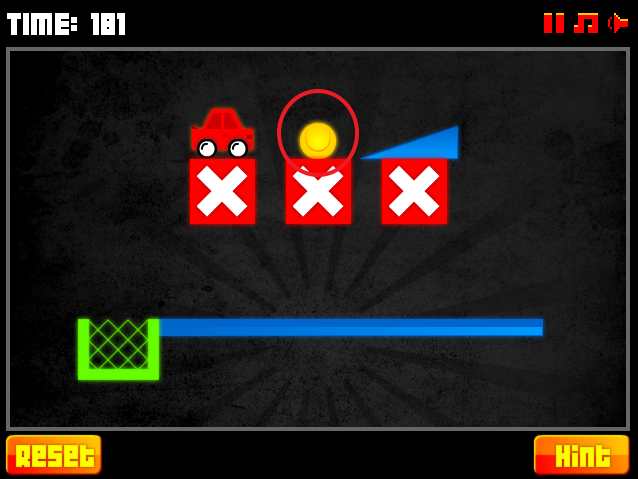 이번 스테이지는 공을 바닥에 있는 곳에 넣는 것이 목표입니다.