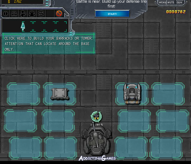 건물 건설 시스템 기지 주변의 지정된 타일에 병영과 타워 2종의 건물을 건설할 수 있다. 병영은 아군 전투 유닛을 자동으로 생산해 전선에 투입하고 타워는 사거리 내 적을 자동으로 공격한다. 건물은 기지 인근 지역에만 배치할 수 있으며 자금이 충분히 모여야 건설이 가능하다.