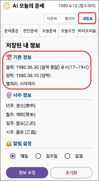 - 음력생일 등록하면 양력 날짜 자동 변환