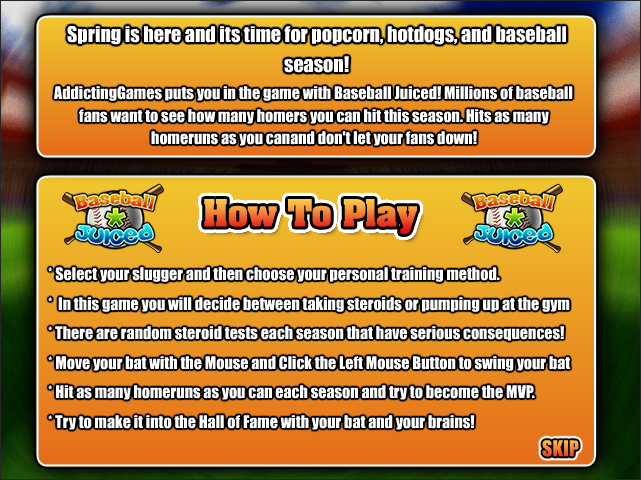 베이스볼주스드는 2008-2009년 AddictingGames에서 출시된 야구 홈런 타격 게임입니다. 2000년대 메이저리그 스테로이드 스캔들을 풍자한 독특한 설정이 가장 큰 특징입니다.