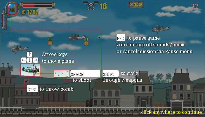 - Ctrl 키로 폭탄을 투하해 광범위한 피해를 입힙니다.